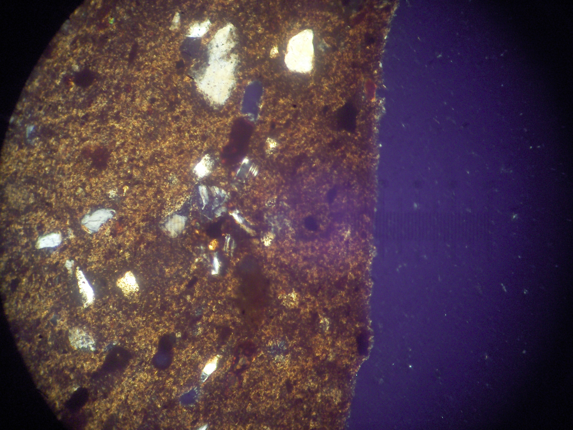 Before thin section analysis, it was necessary to re-examine and compare the current ARA and BR samples under a compound microscope in order to confirm the presence of the two ware groups originally noted by Adams (ND). According to his suggestions, the present re-examination was carried on fresh breaks under a x10 compound microscope, supplemented by tests with 10% dilute hydrochloric acid. The latter test allowed the visual identification of calcareous inclusions according to the shapes of their voids (Orton et al. 1993, 256-7).