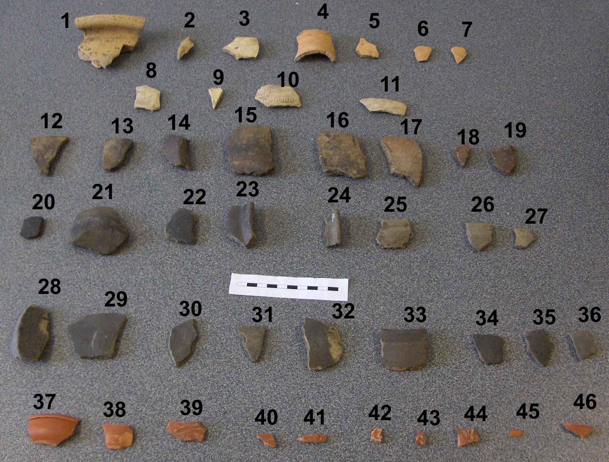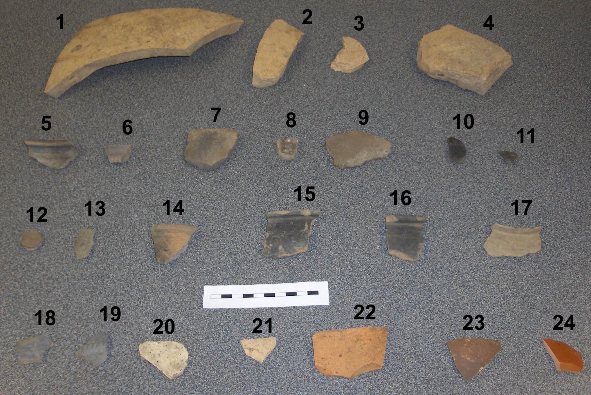 The site produced twenty-nine sherds of local grey coarse wares (LGCW) weighing 506 grams. All sherds come from the New Forest region. Fulford (1975) stresses the similarities between such wares and their equivalents produced by the Alice Holt/Farnham kilns. According to Fulford (1975), it is difficult to distinguish these two fabrics and their identification should be based on a combination of techniques, which include the study of both shape and fabric.